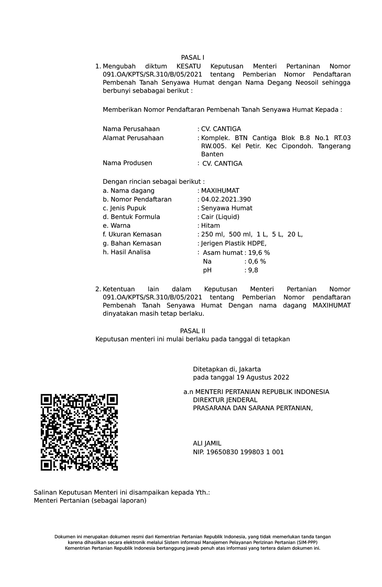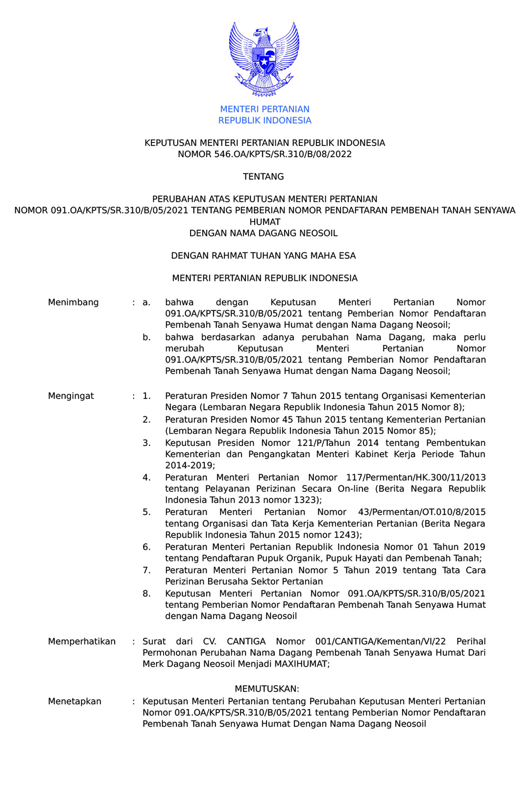 Nomor: 546.OA/KPTS/SR.310/B/08/2022