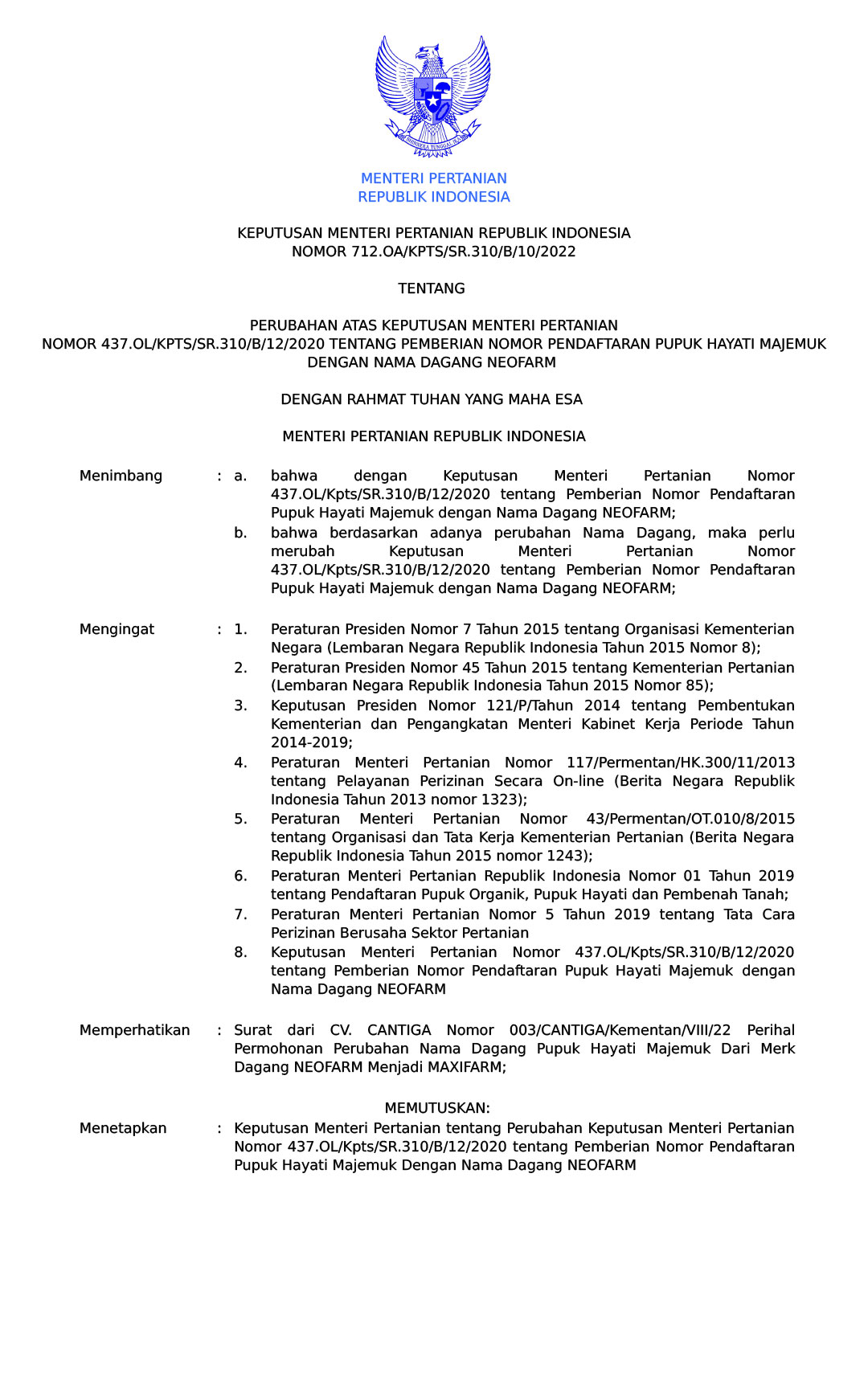 Nomor: 12.OA/KPTS/SR.310/B/10/2022